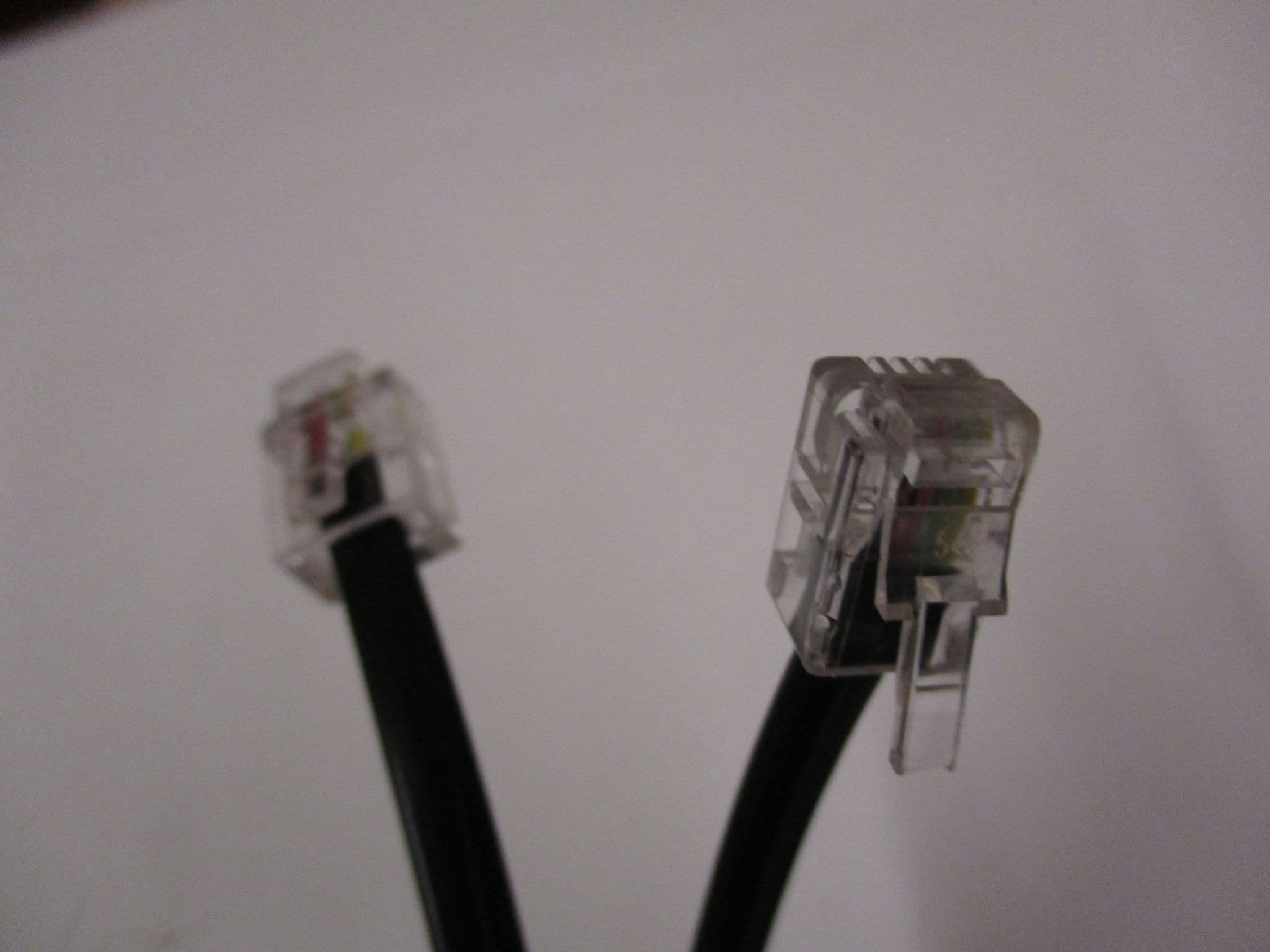 NOTE - THE TELEPHONE PLUGS ARE 2 DIFFERENT SIZES - (NOT BOTH SMALL)