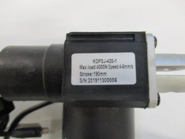 THIS IS A KD ACTUATOR KDFSJ-420-1. 29V IT HAS  2 LEADS - ONE WITH A 2 PIN PLUG FOR THE POWER SUPPLY AND ONE 5 PIN SOCKET FOR THE CONTROLLER IT HAS A 190MM STROKE - 4000N