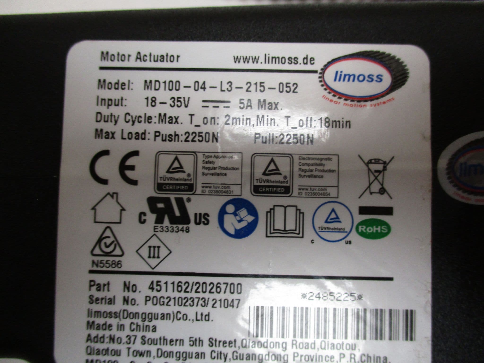 LIMOSS MD100-04-L3-215-052 ACTUATOR LIMOSS MD100-04-L3-215-052 ACTUATOR LIMOSS MD100-04-L3-215-052 ACTUATOR LIMOSS MD100-04-L3-215-052 ACTUATOR